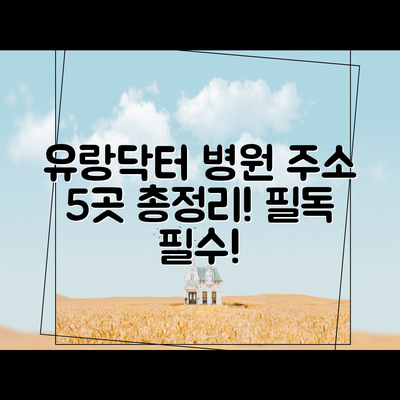 여러분, 의료 도움이 필요할 때 정확한 병원 주소를 아는 것이 얼마나 중요한지 아시나요? 오늘은 유랑닥터 병원 주소를 모아보았어요. 실제로, 저도 한 번 어머니와 함께 병원을 방문할 때 주소를 잘못 입력해서 힘든 경험을 한 적이 있답니다.