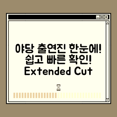 결국, 야당 익스텐디드 컷은 단순한 범죄 영화 이상의 것을 제공합니다. 출연진을 이해하고 그들의 연기를 감상하며, 여러분의 영화 보는 시간을 더욱 특별하게 만들어 보세요!