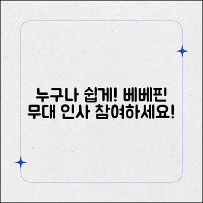 베베핀 무대인사에 참여하고 싶으신가요? 정말 쉽고 재미있답니다! 정말로 많은 아이들과 부모님들이 즐기는 이 이벤트에 여러분도 함께할 수 있어요. 자, 그럼 어떻게 참여할 수 있는지 하나씩 살펴볼까요?