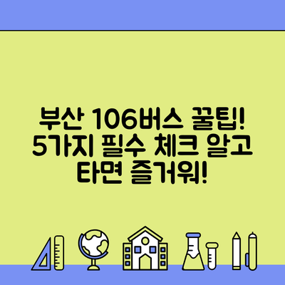 부산의 멋진 경치를 즐기고, 이동 시간을 더욱 스마트하게 관리할 수 있는 방법, 꼭 시도해보세요! 부산 버스 106을 타면서 느끼는 즐거움이 더 배가될 거예요!